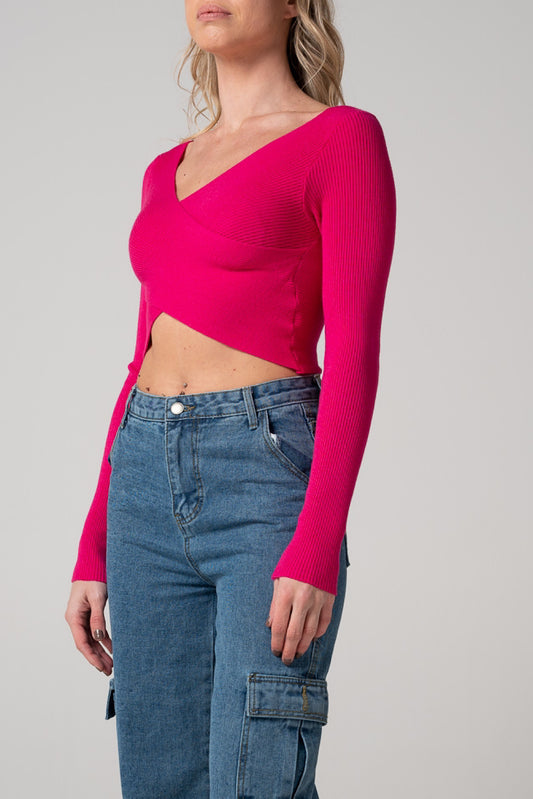 Maglia crop rosa candy a incrocio