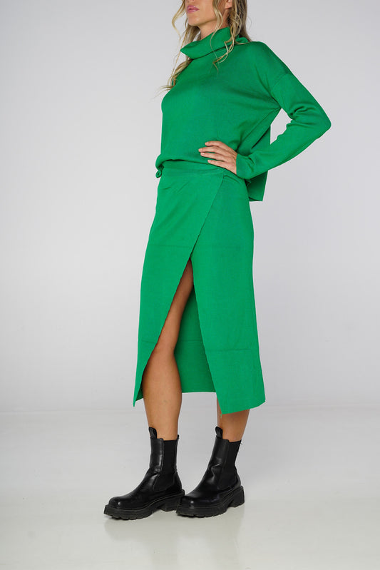 Gonna a portafoglio e Maglioncino a collo alto verde