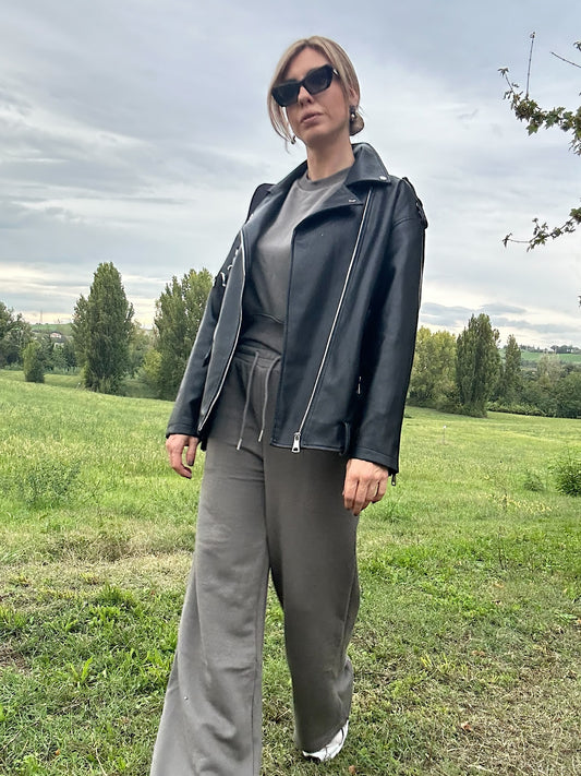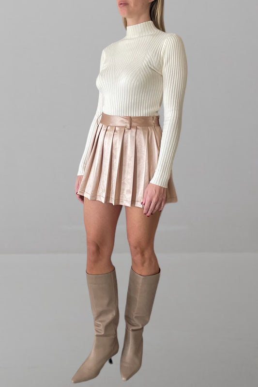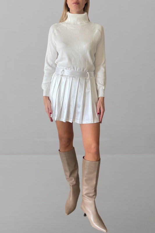 Pull crop a collo alto a costine ( grigio, nero e panna)