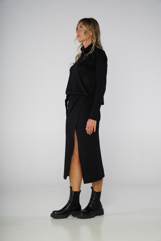 Gonna a portafoglio e Maglioncino a collo alto nero