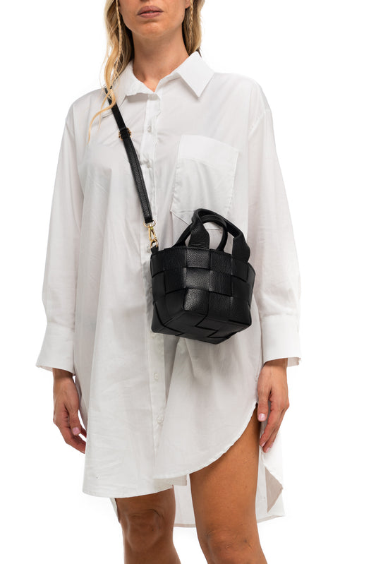 AusverkauftBorsa con intreccio marrone in vera pelle