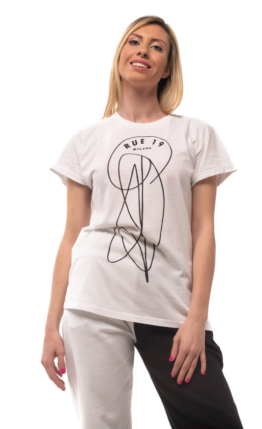 T-shirt bianca Rue 19 Milano con scarabocchio