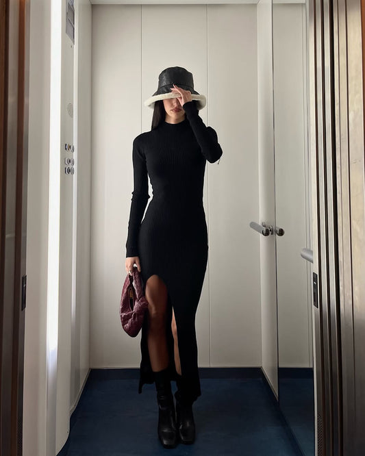 Abito in maglia midi con spacco