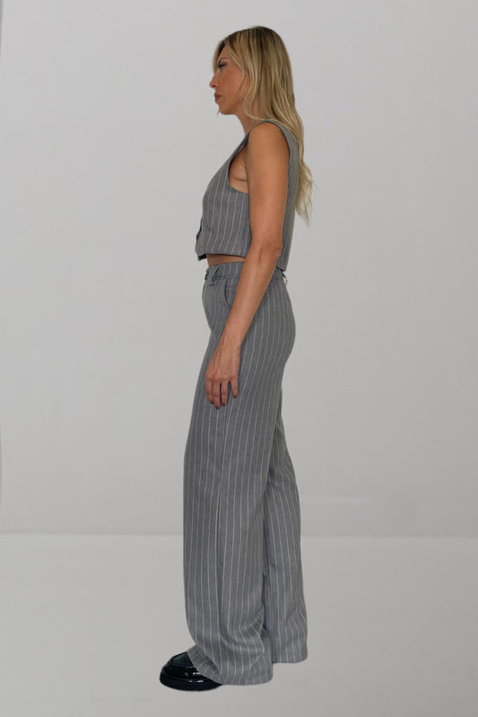 Gilet crop gessato grigio chiaro