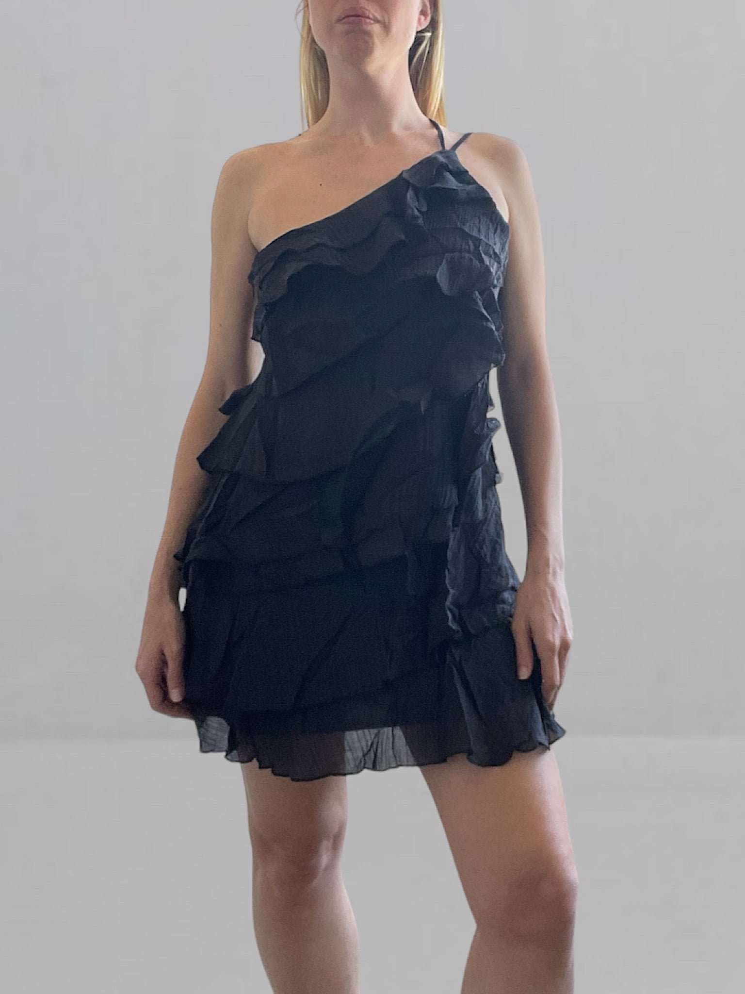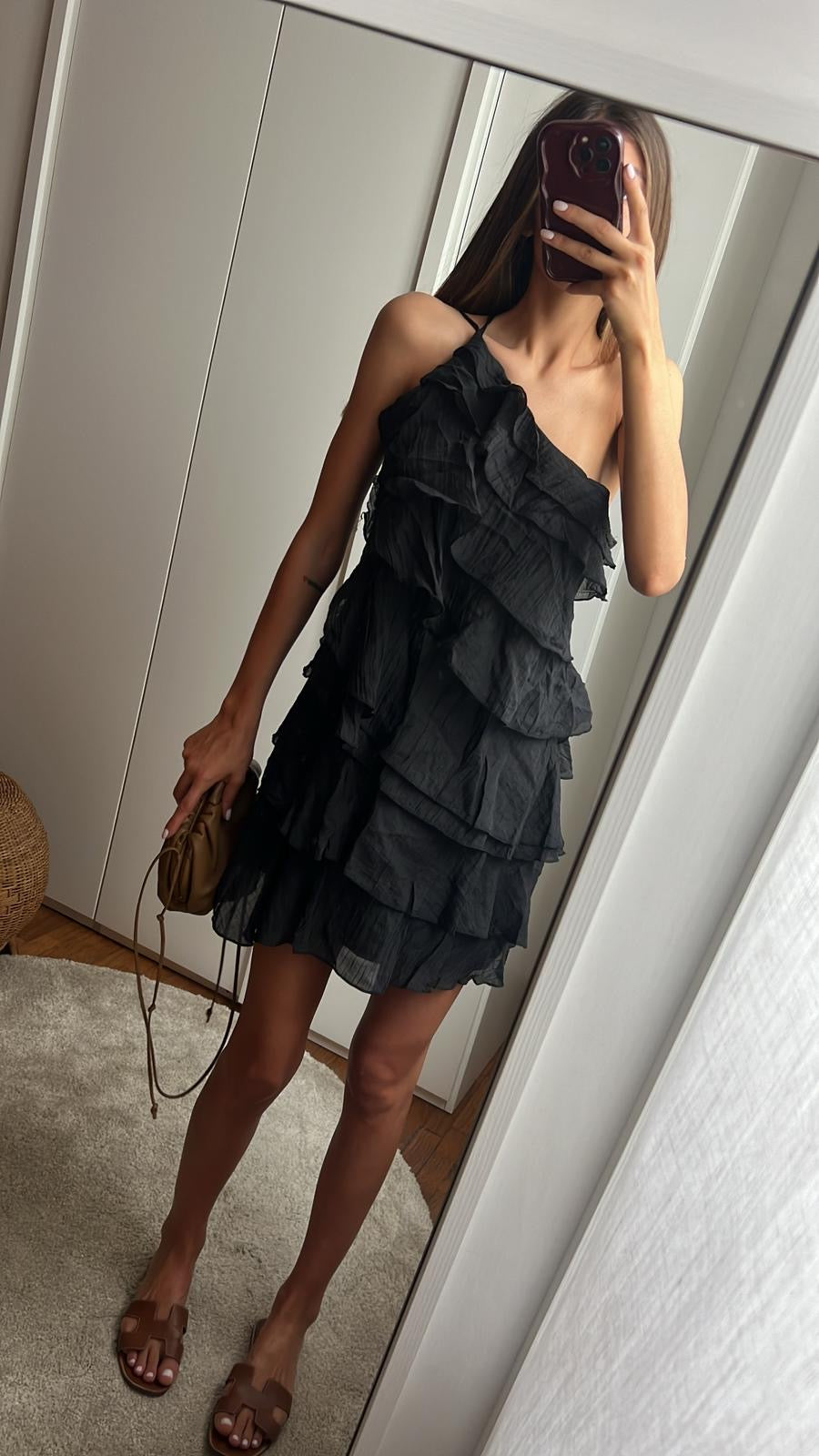 - Mini abito nero con volant